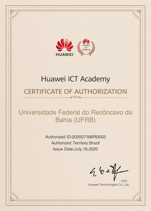 A Universidade Federal do Recôncavo da Bahia (UFRB) recebeu no último dia 15 de julho o certificado de membro da Huawei ICT Academy, uma parceria entre a empresa chinesa Huawei e instituições acadêmicas de todo o mundo. A Huawei é líder global de tecnologia de soluções de informação da indústria e das comunicações (TIC).